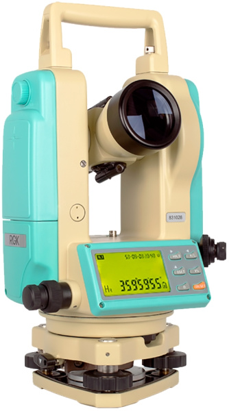 электронныйЭлектронный теодолит RGK T-05 – это современный измерительный прибор класса точных теодолитов. Средняя квадратическая ошибка измерения угла этим прибором составляет 5”, позволяя использовать прибор для инженерно-геодезических изысканий и проектных работ в строительстве, требующих повышенной точности. RGK-05 – это высокотехнологичный электронный инструмент, оснащённый точной системой определения угла поворота. При работе полностью исключается ошибка при считывании показаний – электроника безошибочно регистрирует степень поворота лимба, и измеренные угловые значения отображаются на ЖК-дисплее теодолита.